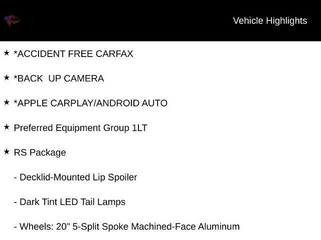 Recent Arrival! *ACCIDENT FREE CARFAX, *BACK UP CAMERA, *APPLE CARPLAY/ANDROID AUTO, 3.6L V6 DI, 10-Speed Automatic, Riverside Blue Metallic, 6-Speaker Audio System Feature, Bluetooth® For Phone, Bose Premium 9-Speaker Audio System Feature, Dark Tint LED Tail Lamps, Decklid-Mounted Lip Spoiler, Preferred Equipment Group 1LT, Radio: Chevrolet Infotainment 3 Plus System, RS Package, SiriusXM w/360L, Technology Package, Wheels: 20" 5-Split Spoke Machined-Face Aluminum.